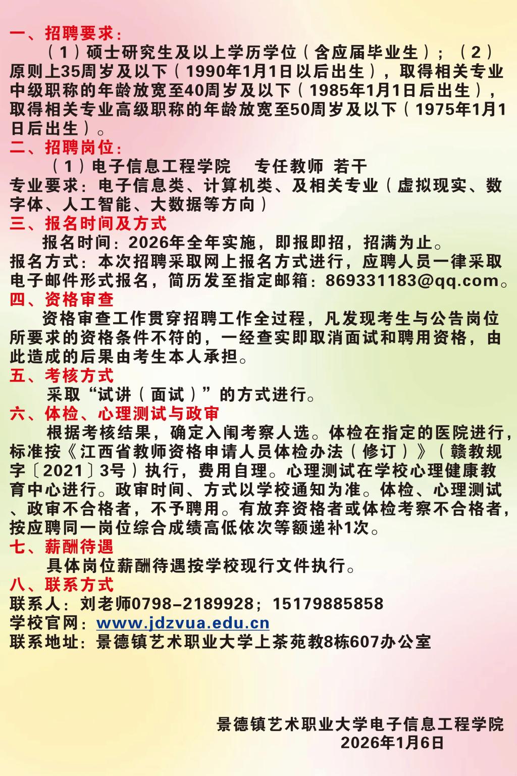 景德镇艺术大学-电子信息工程学院招聘简章